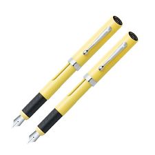 Sheaffer Viewpoint calligraphy fountain pen is the ideal starter pen for calligraphers. The pen features a rubberized grip with traction dimples for very comfortable writing. The pen has a window in the barrel so that you can easily monitor your ink supply. Each Viewpoint pen is color-coded for the nib (Fine 1.0 mm, Red; Medium 1.5 mm, Yellow; Broad 2.0 mm, Orange). The pen comes with 2 Skrip ink cartridges (1 black and 1 blue). Blister packed.
